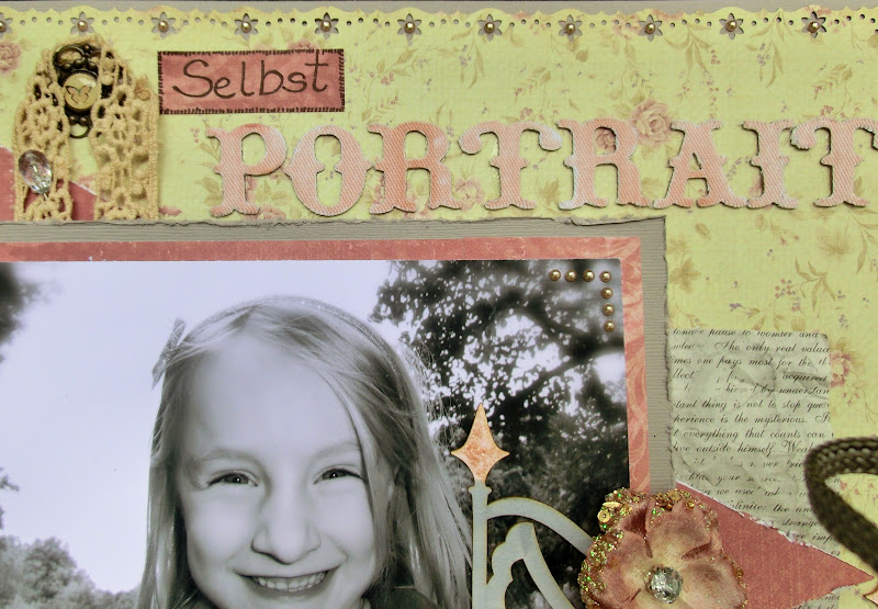 By using this design, I managed to get 12 photos on one page. I broke up the border by using little 2x2 paper squares with decorative elements. The center photo is my DD showing off her "princess dress" she was allowed to wear for the special day.