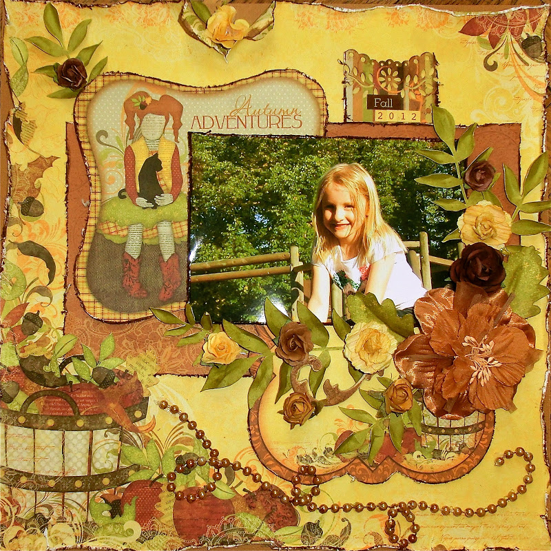 Apple Cider from Bo Bunny was the perfect paper line for this. I am so happy that it is so versatile - distressed works just as well as the rather clean and simple from my previous posts.